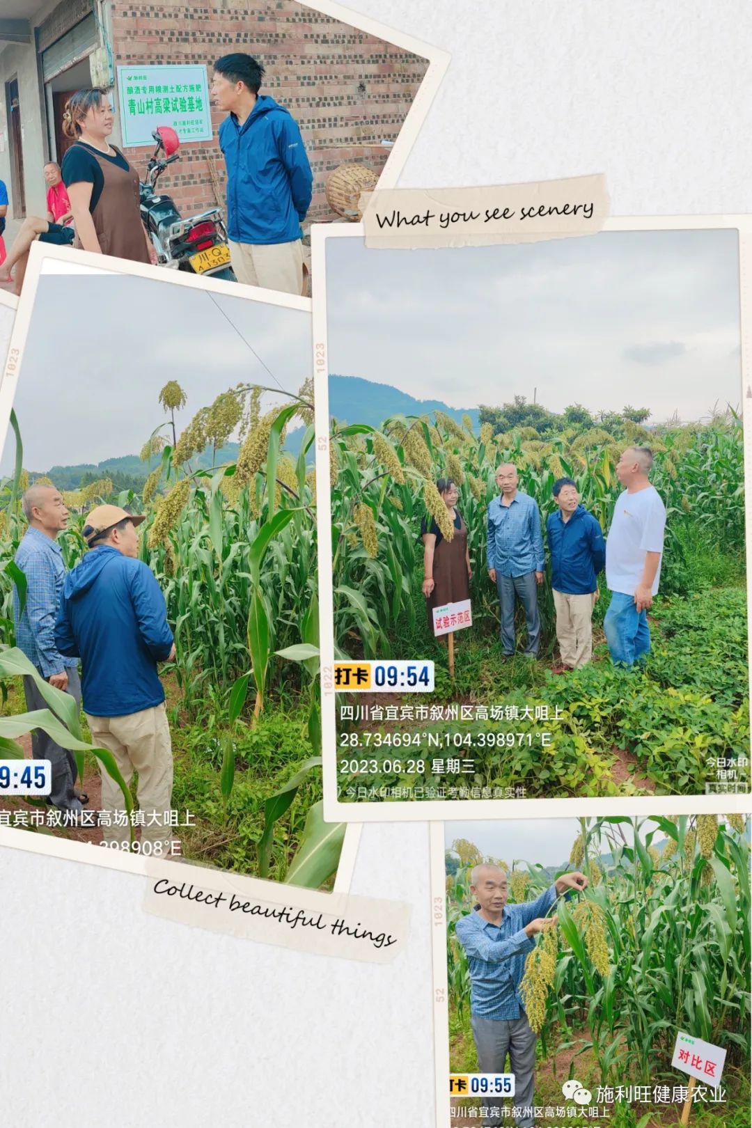 潘根兴教授一行人员与四川施利旺领军人才专家工作站何明康等一同考察了工作站试验示范基地,在青山村酿酒专用粮高粱试验示范基地考察时与村书记李世明,村主任徐兰英,王代秀及当地村民作了深刻交流,潘教授对高粱种植,合作社的经营状况,酿酒高粱种植收益及面临的技术问题进行了现场指导讨论和研究。